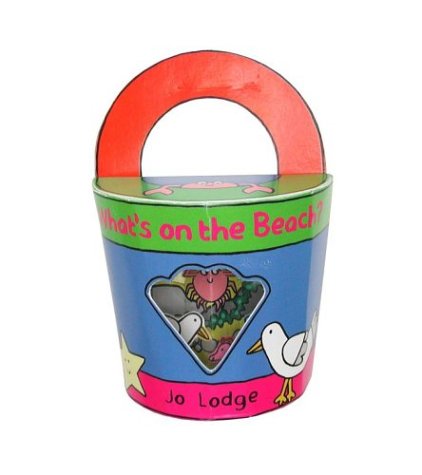 The cover of the board book What's on the Beach? takes the shape of half a beach bucket, with a transparent window showing cheery cartoon creatures within. Crab borrows a bucket, shells, pebbles and more from his shoreline friends. A sandcastle pops up as the grand finale. 12 pages.